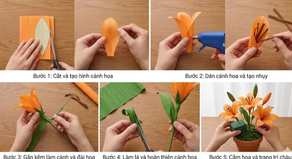 Below is a detailed step-by-step guide from Ly Giấy Việt Nam to help you transform simple sheets of crepe paper into a work of art.